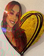 Turn your favorite photo into a bold, glossy keepsake with a luxe touch. This heart-shaped design features a vibrant full-color portrait layered over a textured gold backdrop and sleek black accents — sealed to shine and built to last. It’s more than a picture — it’s a memory frozen in time.